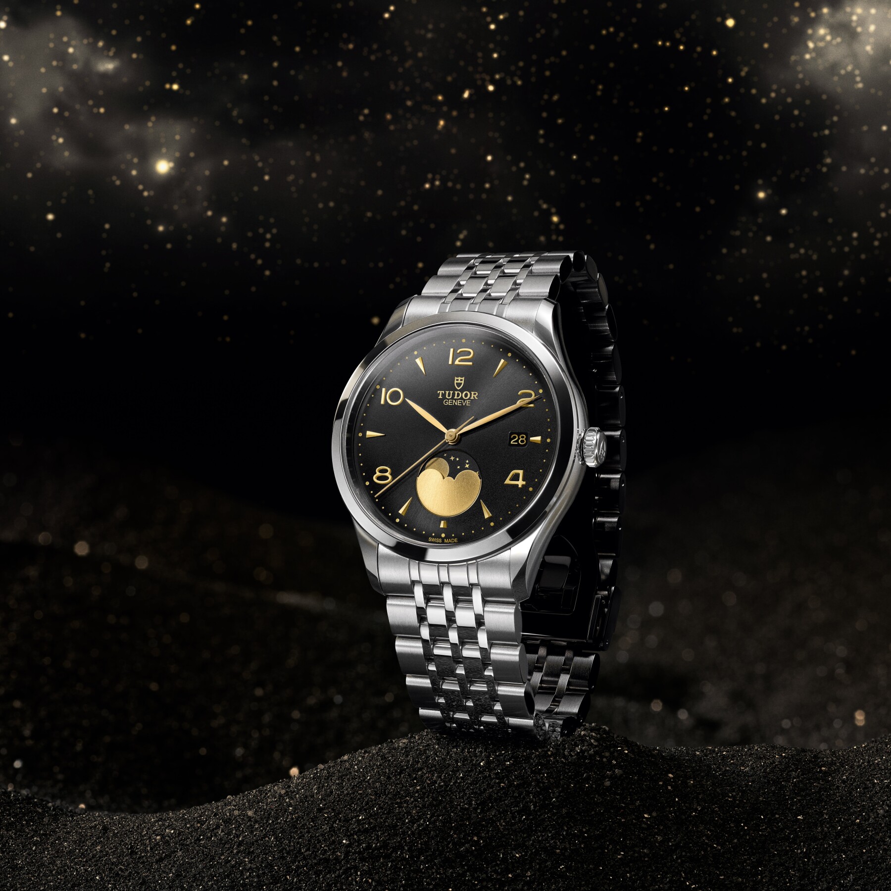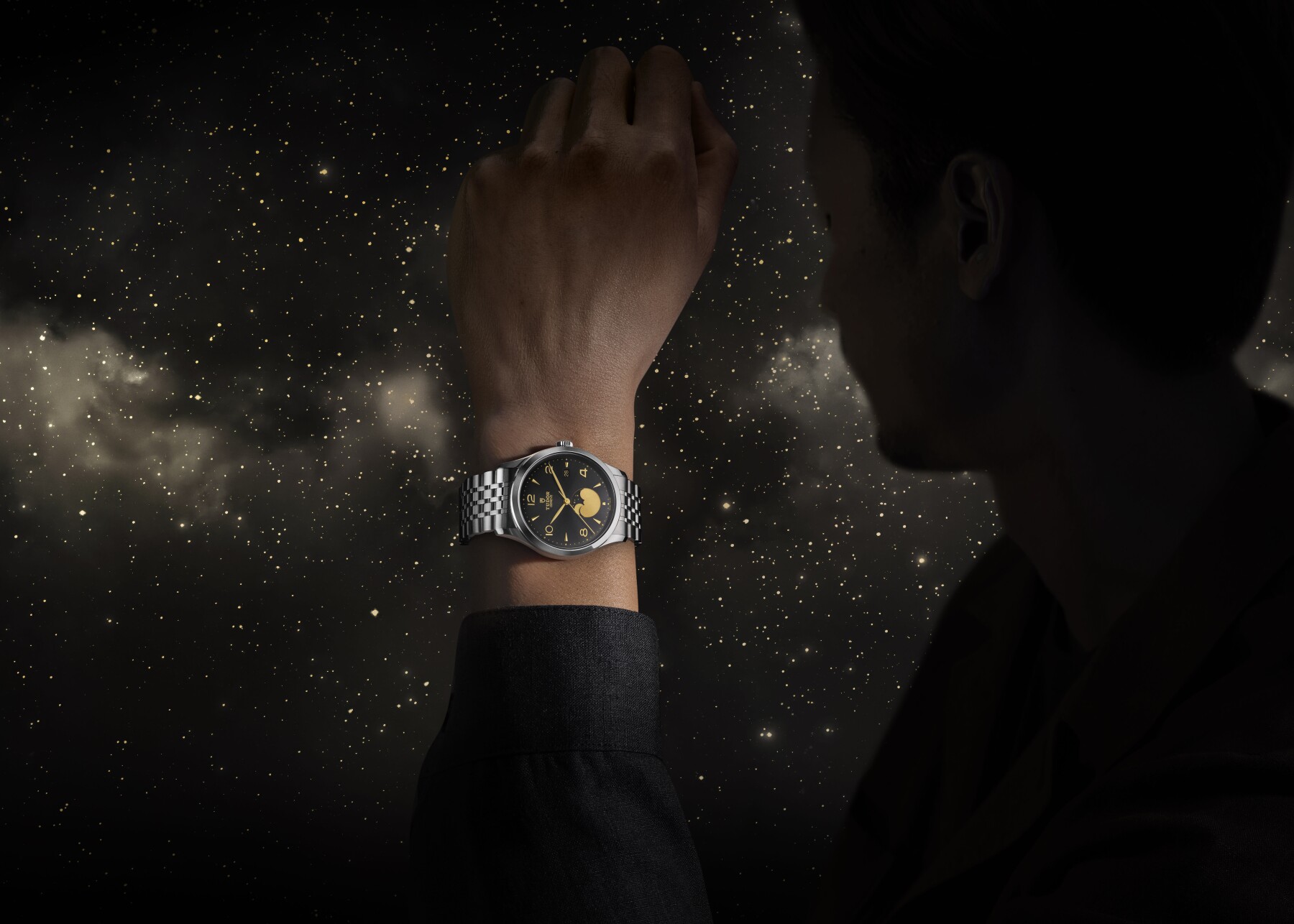 The subtle sophistication of the 1926 line was the perfect place to start. This line is named after the year when "The Tudor" was first registered as a brand on behalf of Rolex founder Hans Wilsdorf. It captures and stays true to TUDOR's philosophy, representing both beauty and value. Working with TUDOR's designers, Jay added his magic to the watch, and the result is as magnificent as a resplendent full moon lighting up the night sky. Framed by a perfectly polished bevel, the moon phase indicator appears at 6 o'clock on three brand new dials in 39mm stainless steel cases for the 1926: Blue, Black and Jay's own, champagne-colour. The moon phase indicator for each dial is distinct, and Jay's vision for the champagne-color dial model has come to life in a truly fantastical way, with the phantom moonlight gold disc representing the moon hidden behind an inky black cutout that slowly disappears as the moon waxes and wanes.