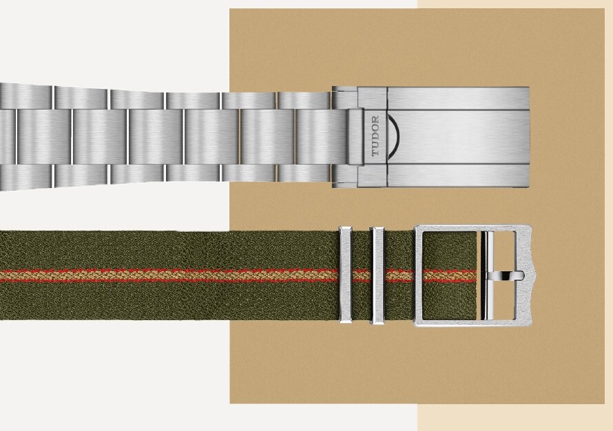 The Ranger models are offered with an entirely satin-brushed stainless steel bracelet, with the TUDOR "T-fit" clasp equipped with a system for rapid length adjustment. Easy to use, requiring no tools and offering five positions, this practical system allows wearers of the Ranger to carry out fine, instant adjustments of the total length of the bracelet along an adjustment window of 8mm. Also offered as a configuration with all Ranger models is a single-piece earth tone tri-colour fabric strap. Woven in France on 19th century Jacquard looms by the Julien Faure company in the Saint-Étienne region, its manufacturing quality, robustness and comfort on the wrist are unique.